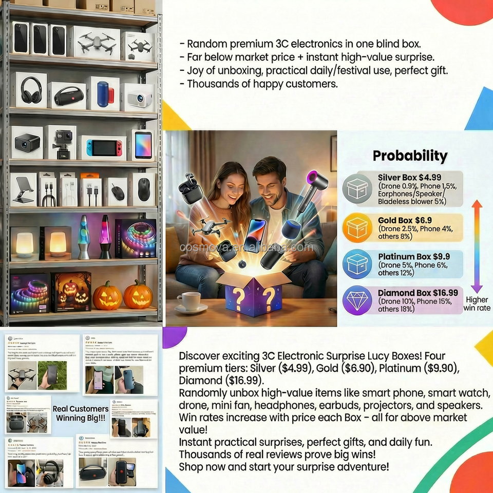 Caja Misteriosa de Electrónicos COSMOVA, Alta Calidad, 1-3 Piezas de Gadgets Tecnológicos Aleatorios, Experiencias Sorpresa, Caja Ciega, Venta al Por Mayor OEM