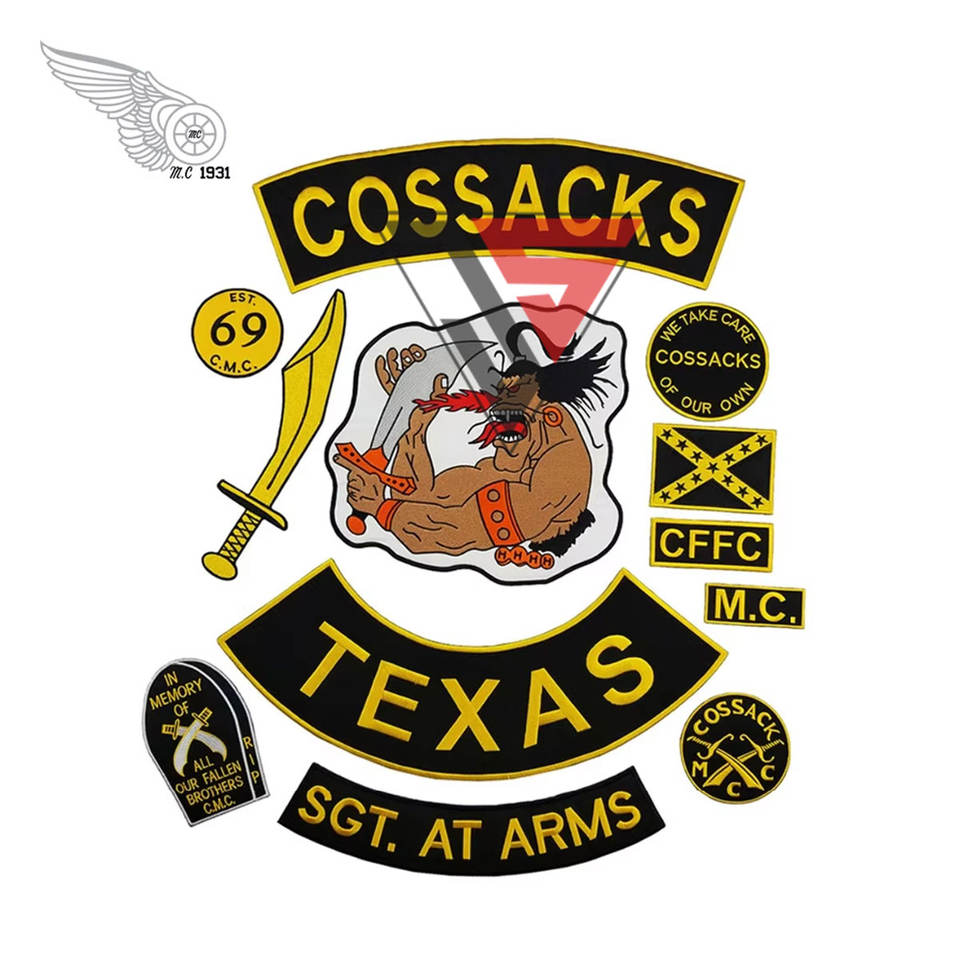 COSSACKS TEXAS MC Parches para chaqueta de motociclista Chalecos 12 PCS Conjunto de parches bordados personalizados para motociclista MC Forma de flor