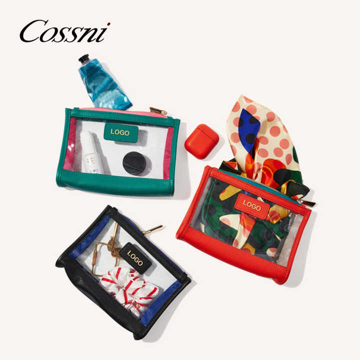 COSSNI-Mini organizador de maquillaje de PVC holográfico, bolsa de aseo bonita con logotipo personalizado para viaje, bolsa de maquillaje con cremallera