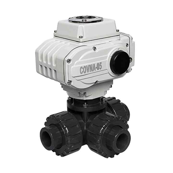 COVNA-válvula de bola eléctrica de PVC, actuador eléctrico de 3 vías con puerto T