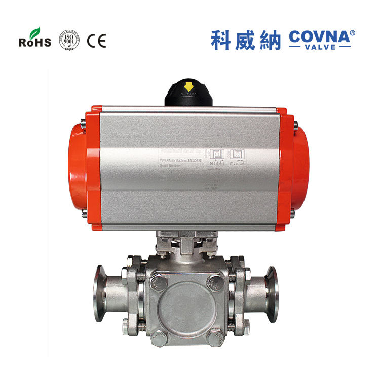Nombre:Válvula de bola neumática de tres vías de alta presión de la abrazadera de COVNA Tri