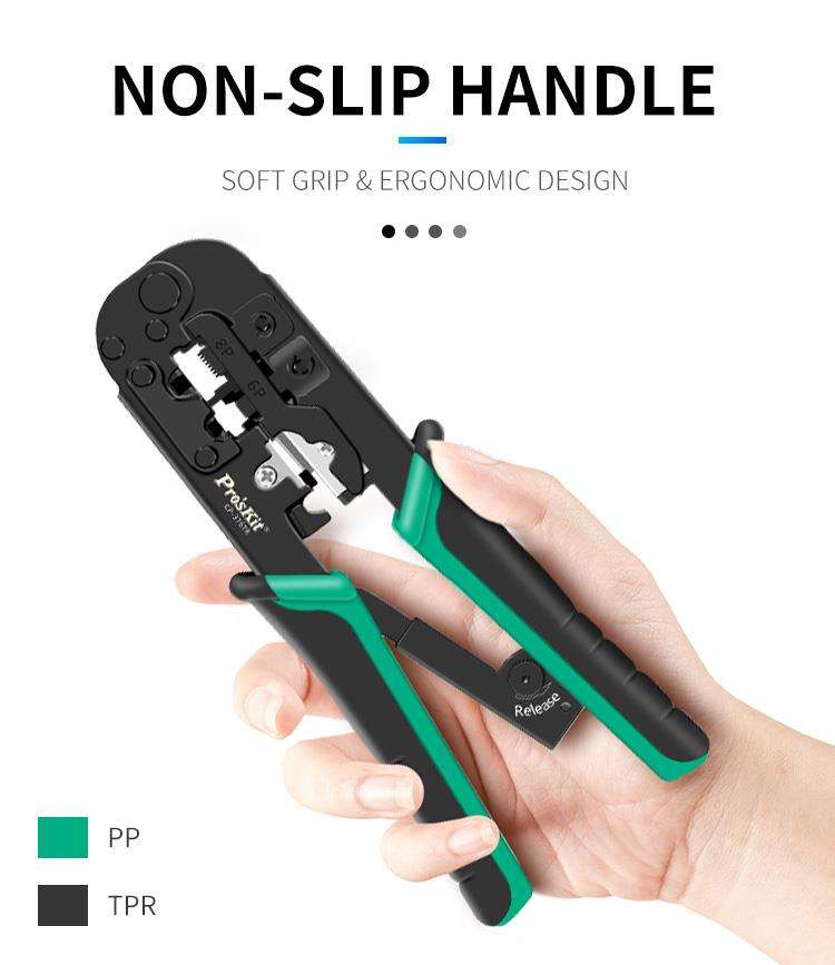 Herramienta de crimpado de telecomunicaciones 4P/6P/8P (190mm) para enchufes modulares 8P8C/RJ45 6P2C/6P4C/6P6C RJ11/ RJ12 RJ22 4P2C/4P4 de 1/2/
