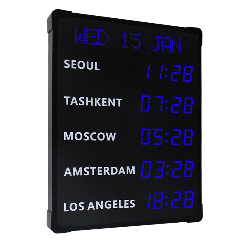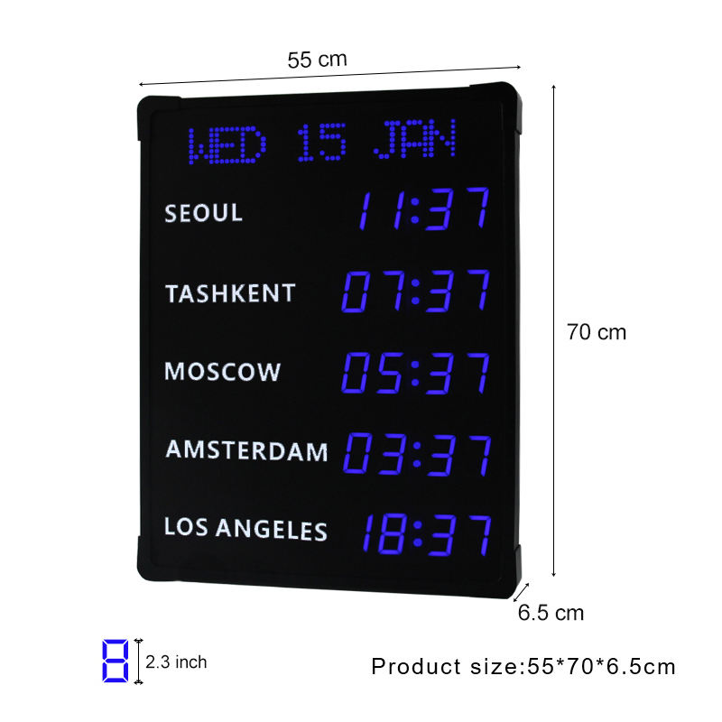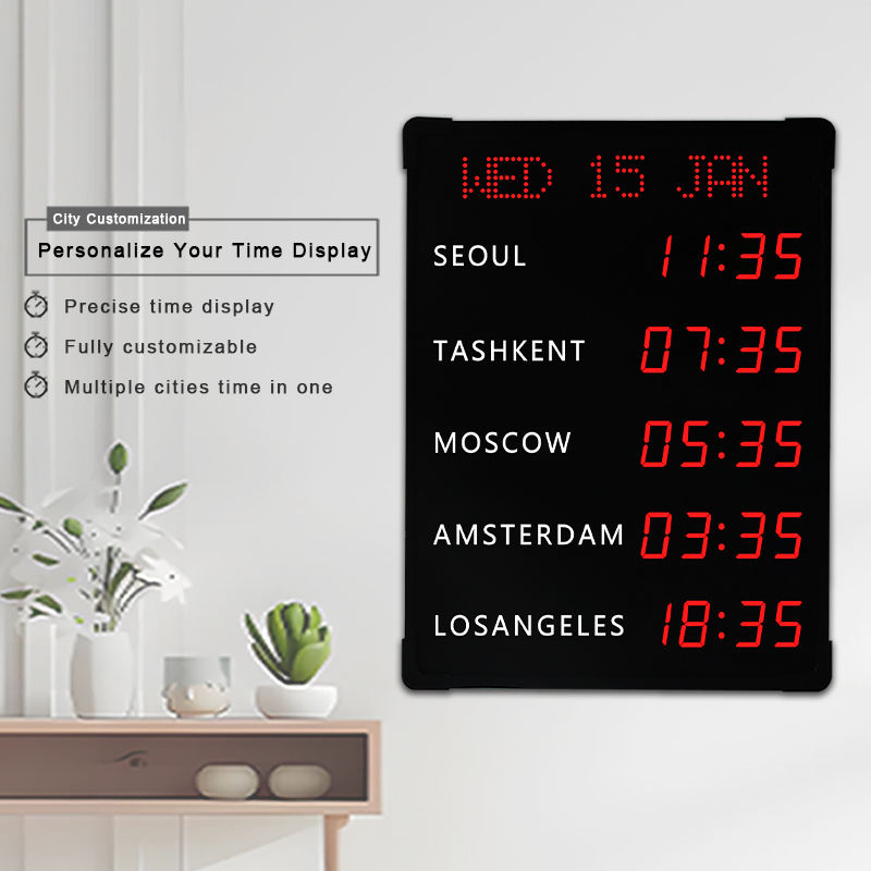 Reloj mundial digital LED de precisión CP34 Zonas horarias elegantes con fecha electrónica y nombres de zona de vinilo