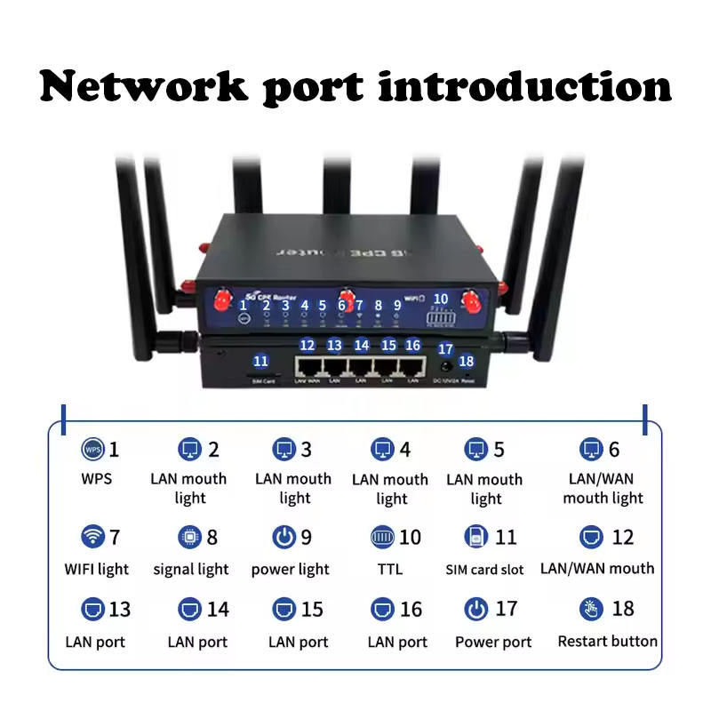 Router CPE WIFI Snapdragon X62/X55 WiFi6 de Doble Banda, QoS Mesh, Bloqueo de Banda PCI, Firewall IMEI, VPN, Router Industrial de 128+ con 5 Puertos de Red