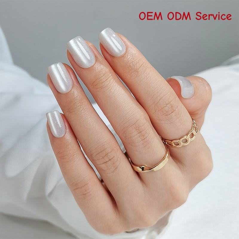 Juego de Uñas Postizas Cuadradas Medianas CPNP, de Alta Calidad, al por Mayor, con Efecto Ojo de Gato, Gel Suave, Uñas Francesas Artificiales Personalizadas