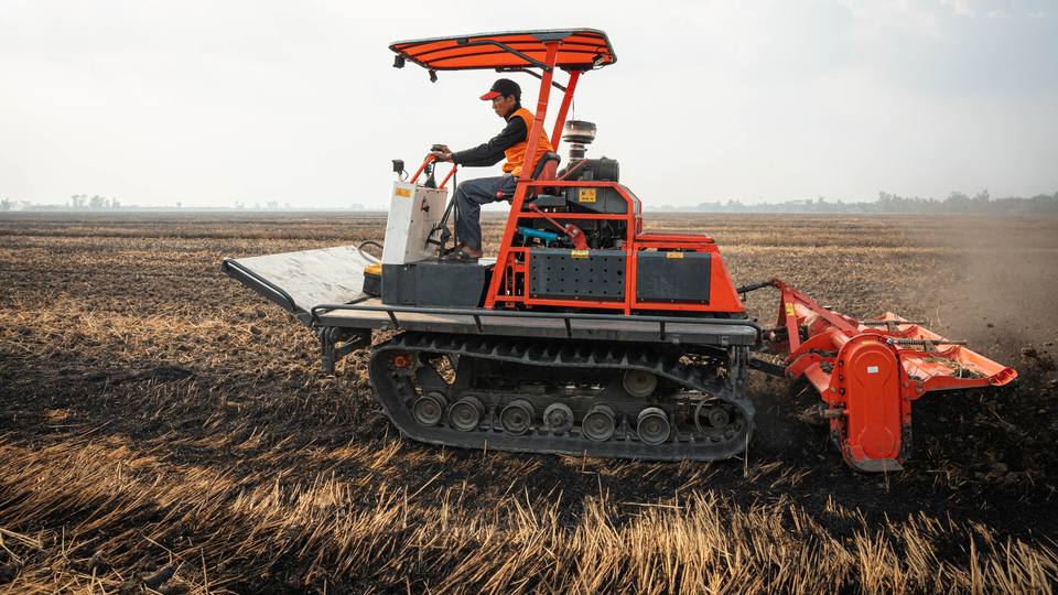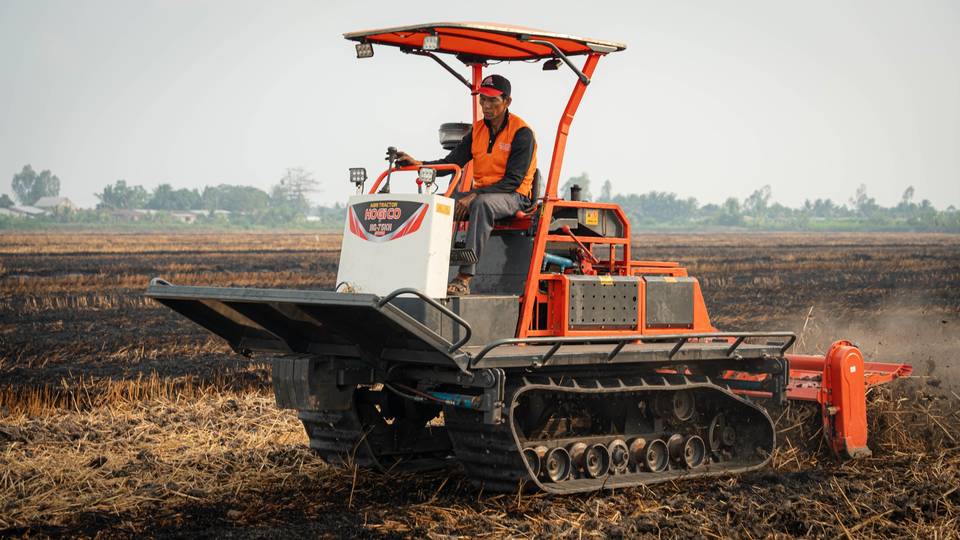 HOGICO 75VN 70HP Tractor sobre orugas de alta resistencia 4WD Tractor agrícola de pista de goma para terrenos húmedos, arrozales y labranza