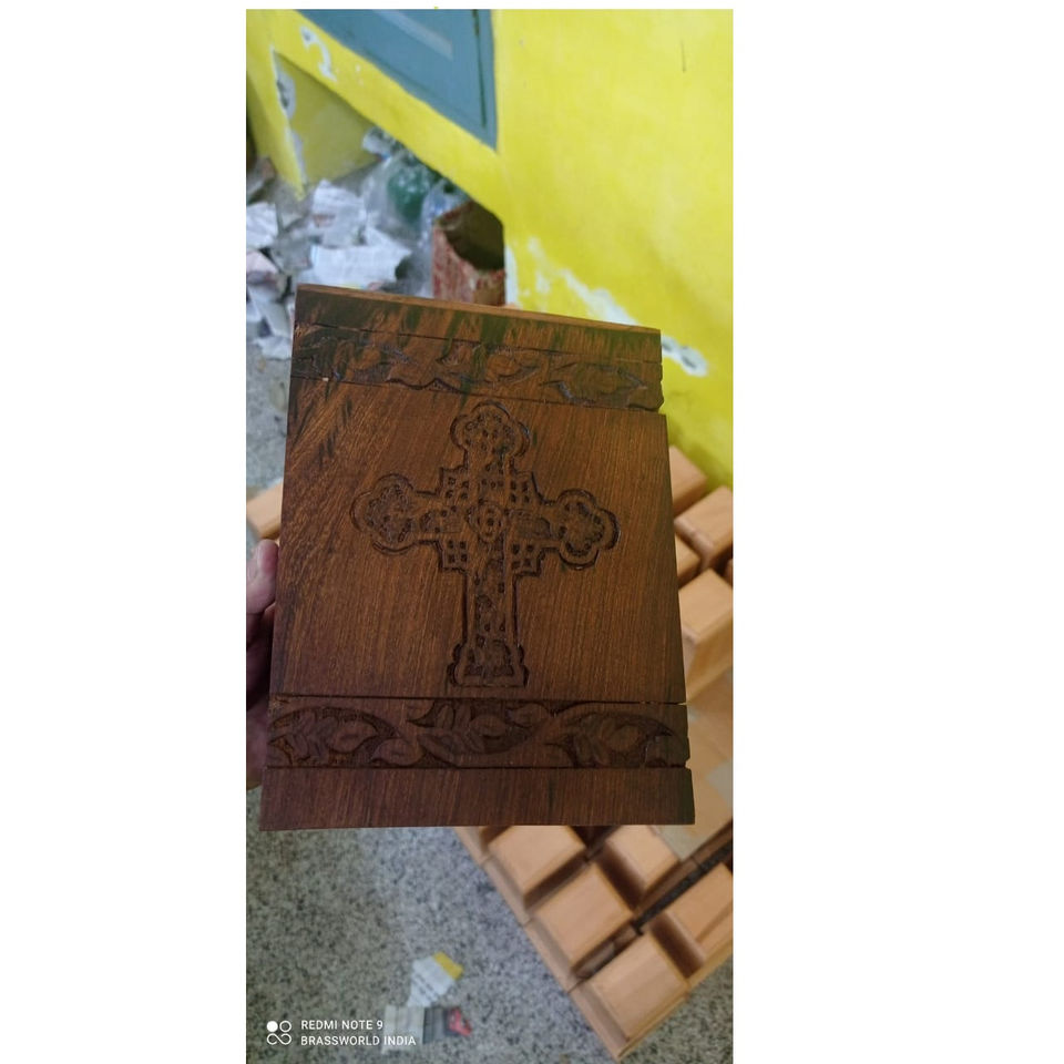 Urna Funeraria de Madera con Cruz Grabada Estilo Americano de BRASSWORLD INDIA, Artículos Funerarios