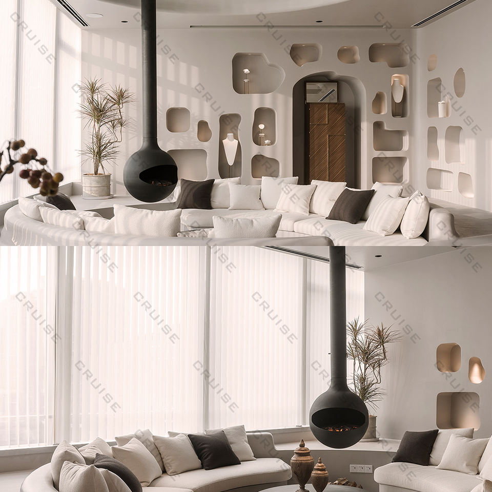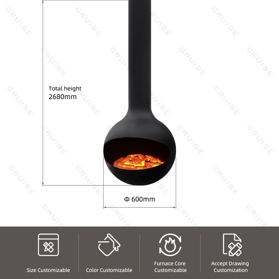 CRUISE 800mm Interior Montado en el techo Diseño moderno Sin humo Bio Etanol Chimenea suspendida Nueva liberación Chimenea colgante