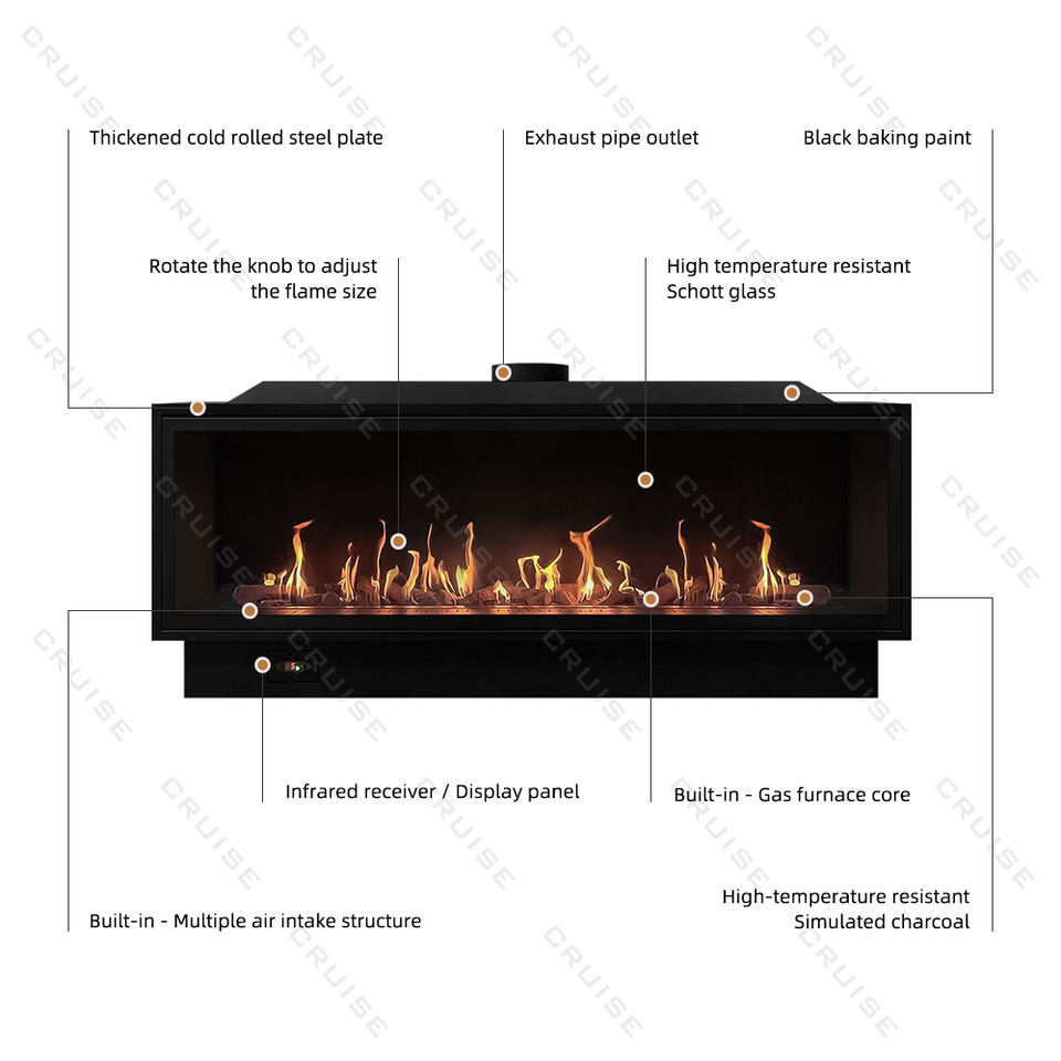 Chimenea de Gas Empotrada Personalizada CRUISE, sin Ventilación, Calefacción a Gas Natural, Decorativa, de Propano, Lineal, para Interiores