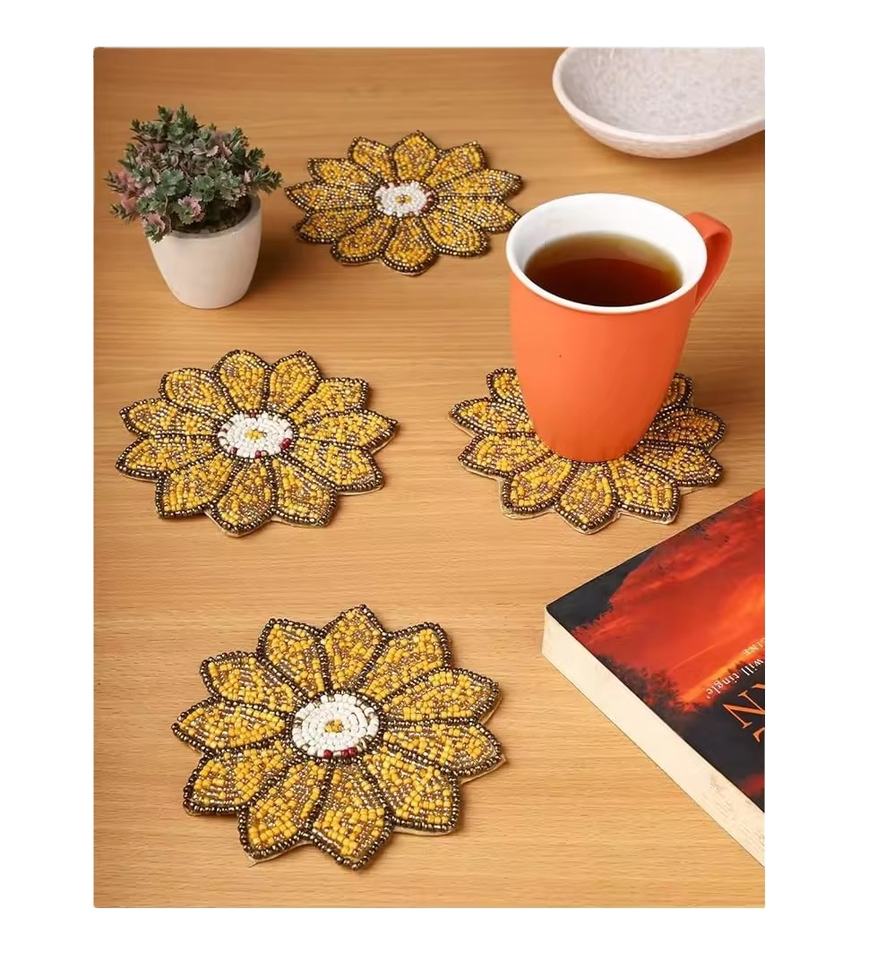 CRYSTAL CRAFT - Posavasos Creativos con Cuentas de Arroz con Diseño Personalizado para una Decoración Acogedora de Mesa