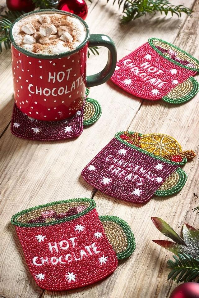 CRYSTAL CRAFT Posavasos de Pulpo con Cuentas, Hechos a Mano con Cuentas de Semillas, Promocionales, Personalizados, Multicolores, Cuadrados