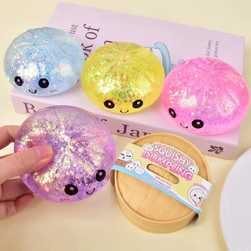Pelota antiestrés blanda con purpurina en forma de dumpling