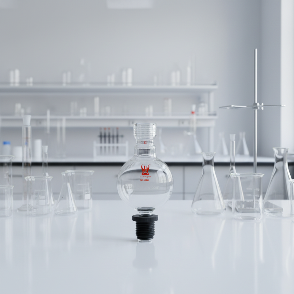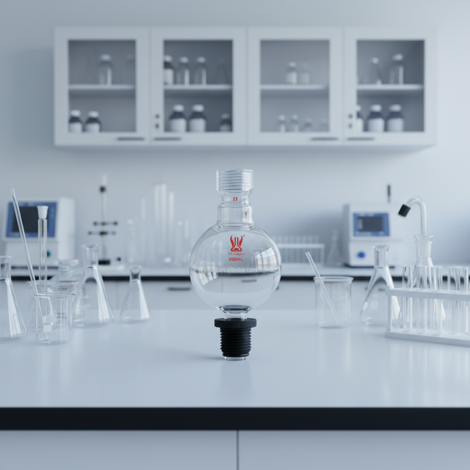 Vidrio de laboratorio personalizado CS Labglass, depósito de cromatografía de vidrio borosilicato con tapa roscada
