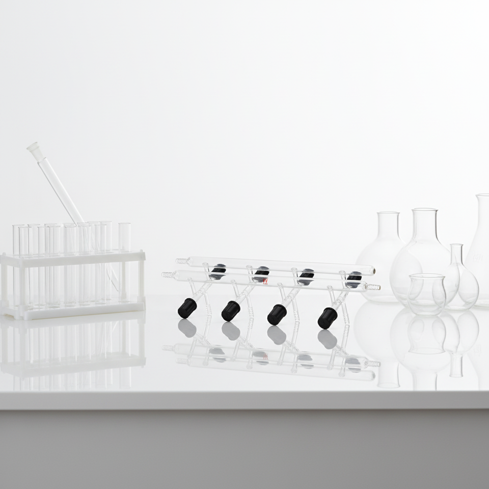 Válvula de vacío doble de vidrio borosilicato para gases inerts, de laboratorio, personalizada, de CS Labglass, con válvula de alto vacío