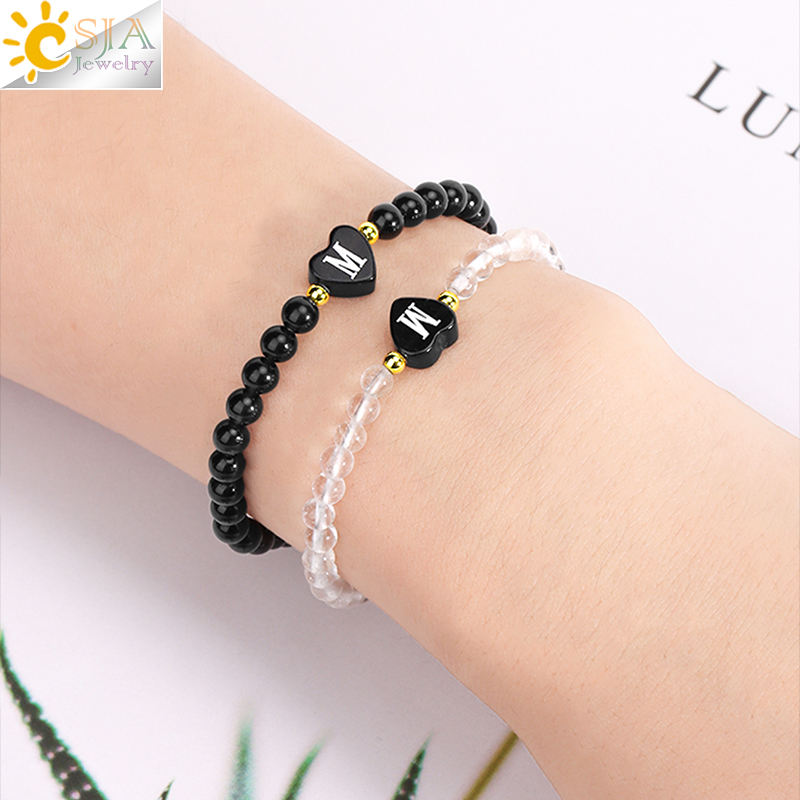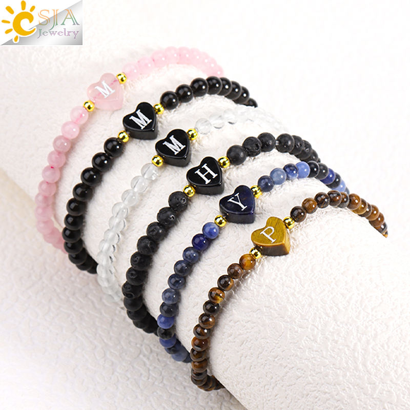 Nombre del producto:Piedra natural A-Z corazón letra inicial pulsera Navidad joyería