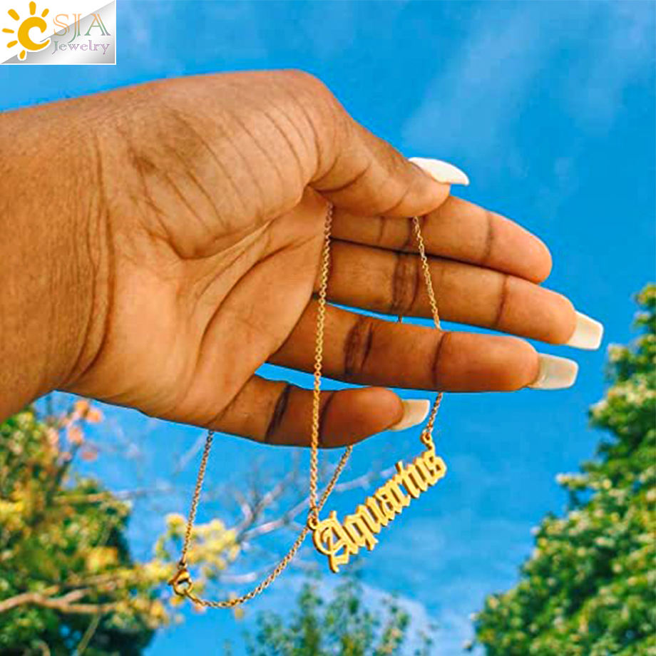 Nombre del producto:Acero inoxidable 12 horóscopo joyería signo del zodiaco collar