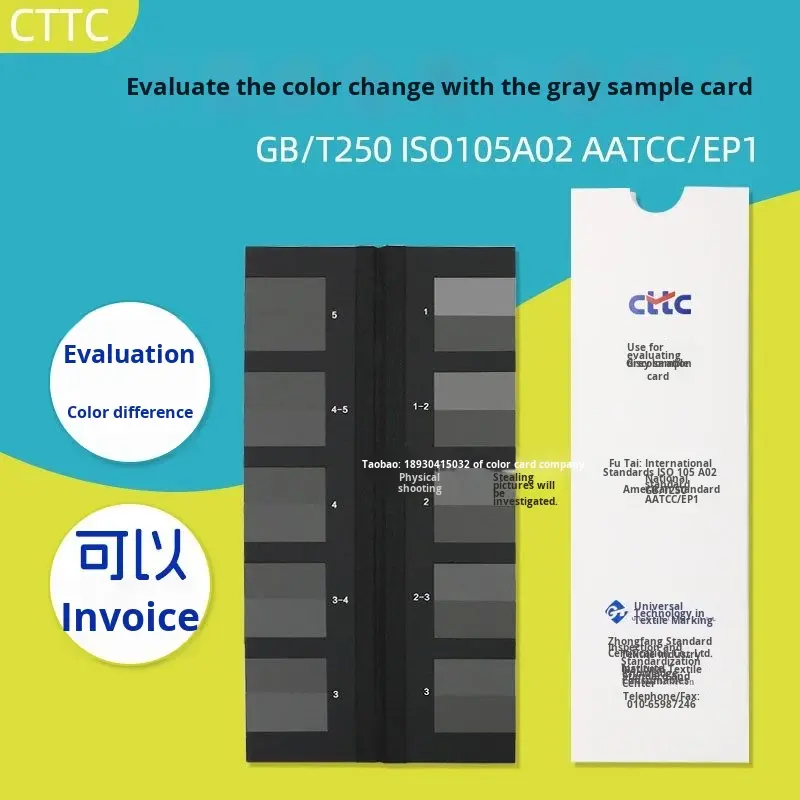 Tarjeta de Muestra de Cambio de Color Gris de Alta Precisión CTTC, Estándar Nacional GB/T250-2008, ISO 105A02, China
