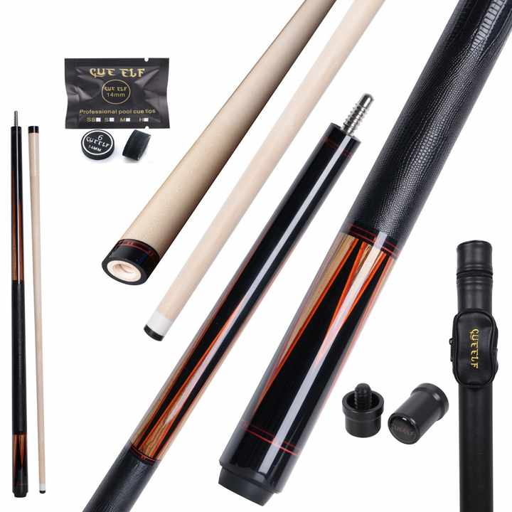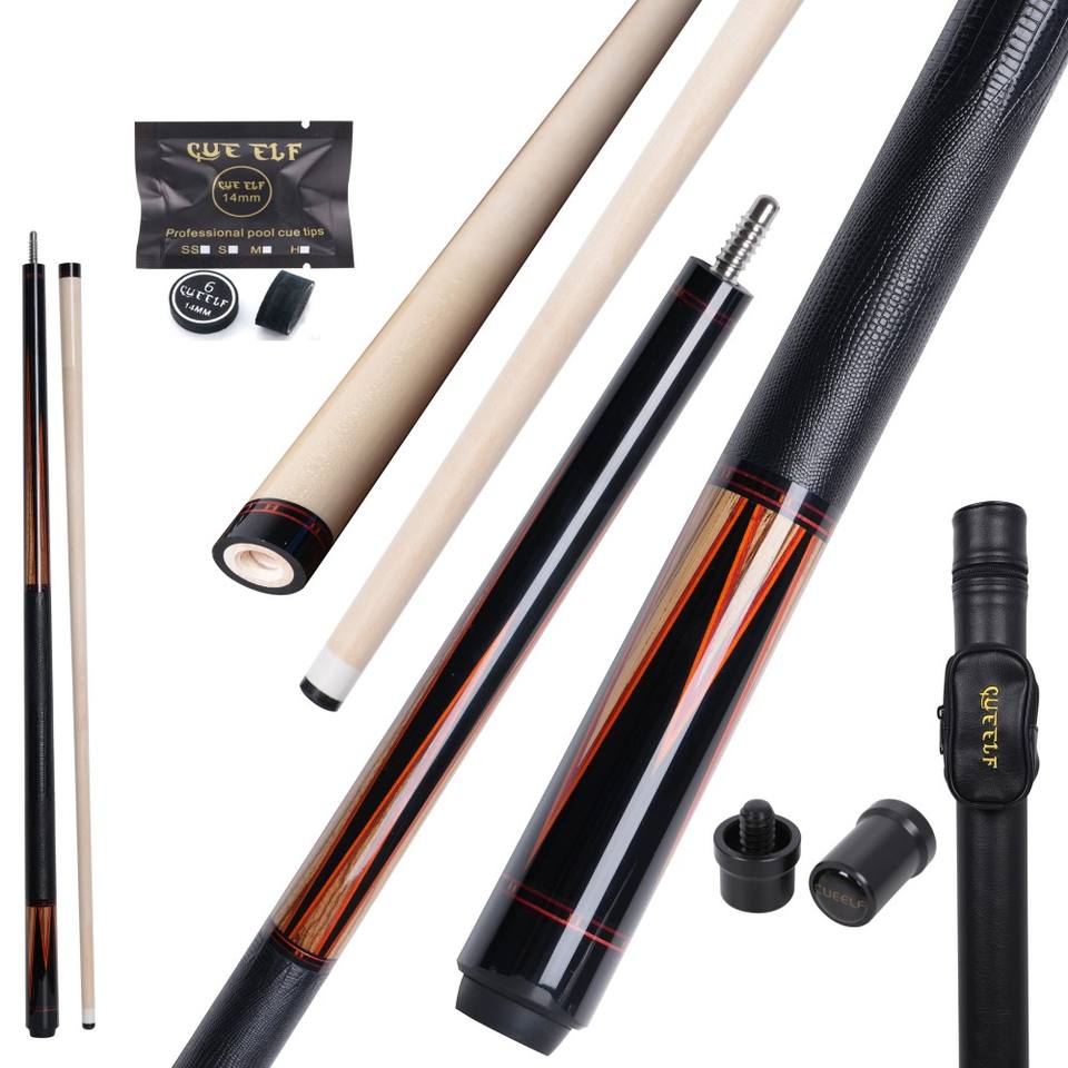 CUEELF Luxury Pool Cue Stick 58 \ "Nuevo diseño con incrustaciones de ébano de madera maciza con taco de billar Zebrano Junta de acero Ceniza Manga de Trasero de madera