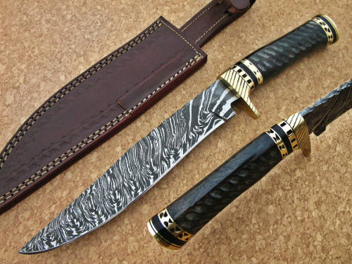 Cuchillo Bowie de caza de acero de Damasco hecho a mano personalizado, mango de Micarta, Funda de cuero, hermoso fabricante de cuchillos OEM de grado DIY.