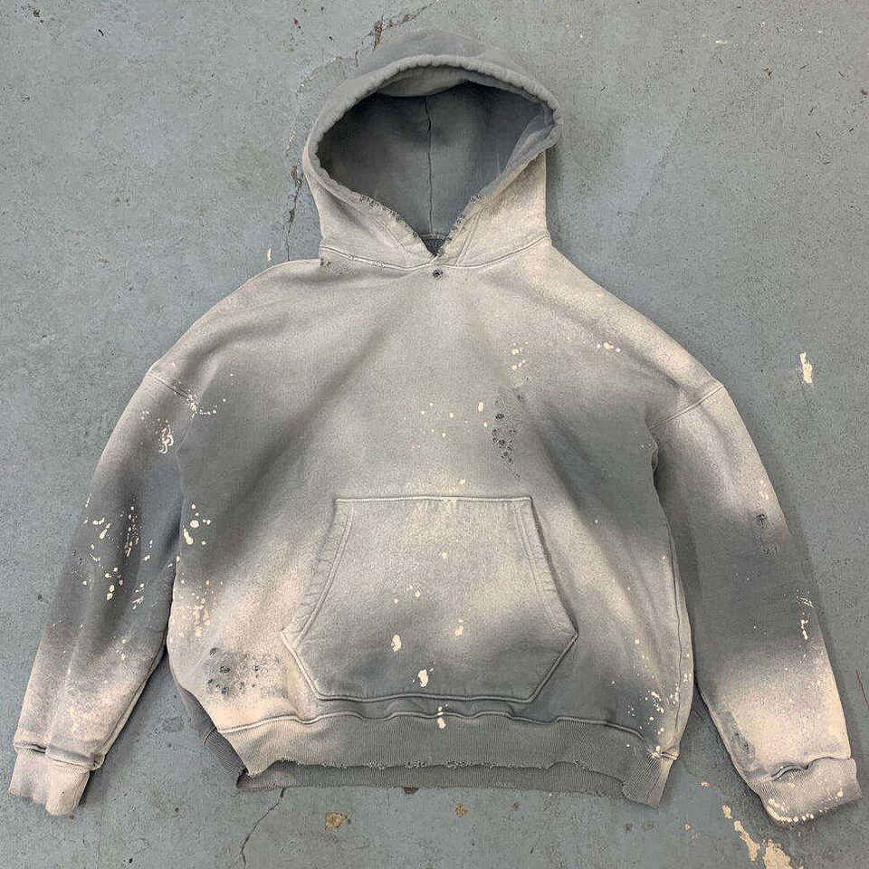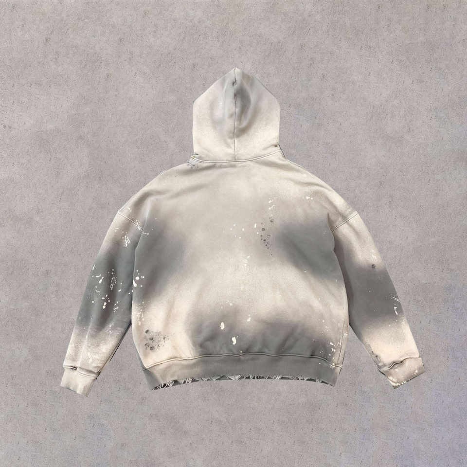 Sudadera con Capucha Personalizada ODM/OEM, Diseño de Pintura Ácida Desgastada, Textura Pesada, Algodón/Bambú, con Diseño de Corazón