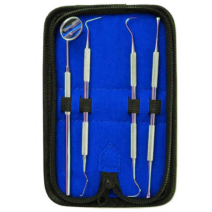 ODM OEM Personalizado al por Mayor, Juego de 4 Herramientas Dentales de Acero Inoxidable para Limpieza Dental con Estuche, Venta Caliente 2026