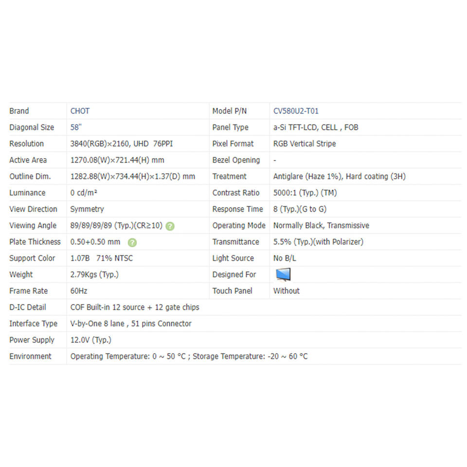 Peso del panel:2.79Kgs (Typ.)