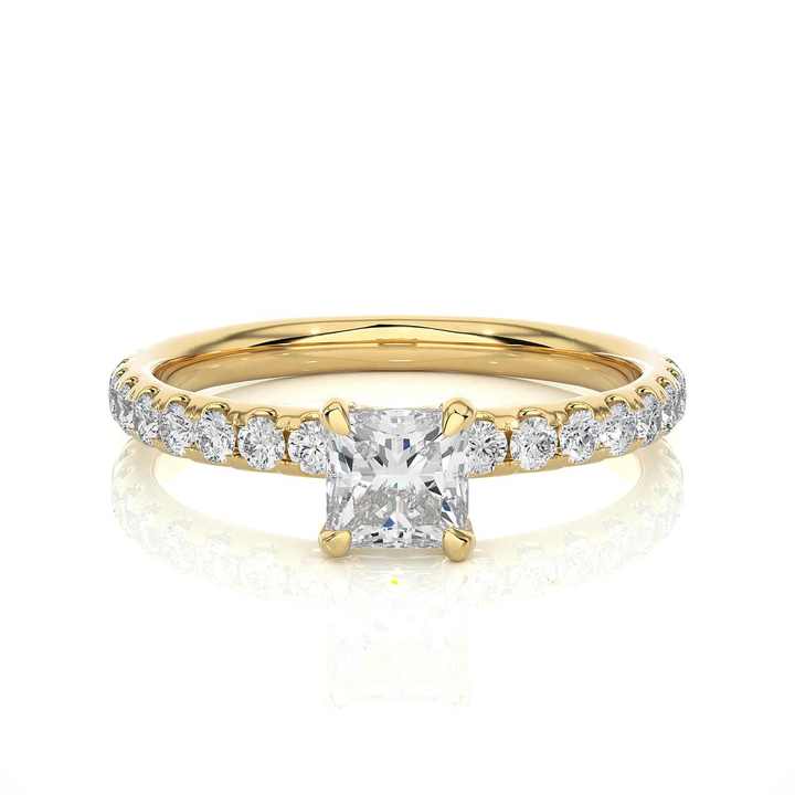 Anillo de Oro Sólido de 14K con Diamante Cultivado en Laboratorio CVD, Corte Princesa, Piedra Preciosa, Engaste de Cuatro Puntas, Joyería Elegante del Fabricante de India