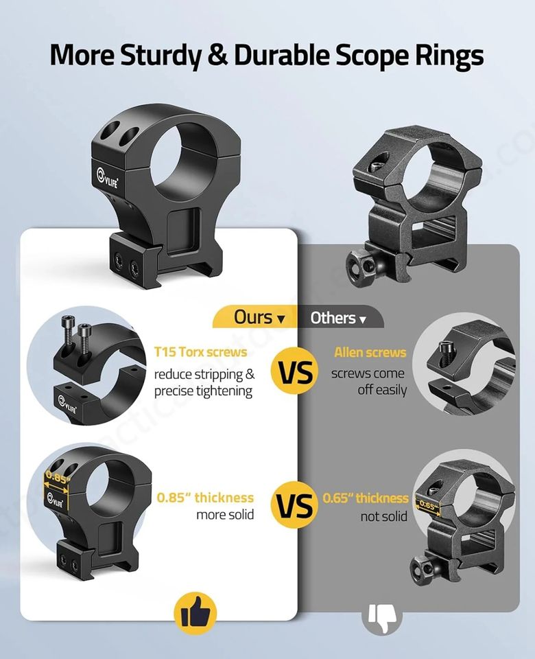 Anillas de Montaje para Mira Telescópica de Precisión CVLIFE de 1 Pulgada, Perfil Extra Alto para 20 mm, Juego de 2 Piezas, Accesorios de Caza