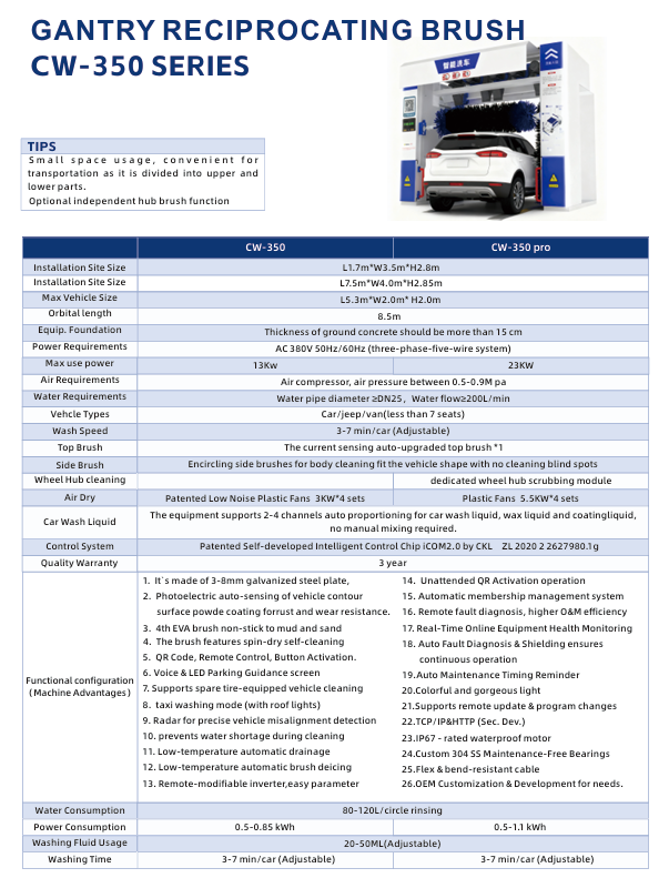 Máquina de Lavado de Autos Automática CW350, Equipo Inteligente de Limpieza de Vehículos sin Supervisión para Gasolineras y Estacionamientos