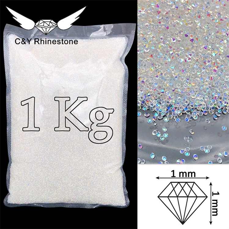 CY Nail Art Cristales Pequeños Micro con Dorso Puntiagudo Piedras de Vidrio AB Strass a Granel por Kg 1Mm Cristales Pixie Negros