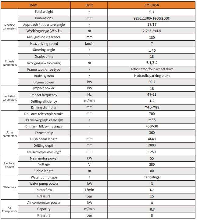 Taladro de roca hidráulica para minería CYTJ45A Jumbo