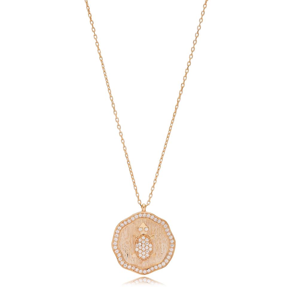 CZ forma de tortuga delicado diseño redondo encanto colgante venta al por mayor hecho a mano 925 joyería de plata esterlina