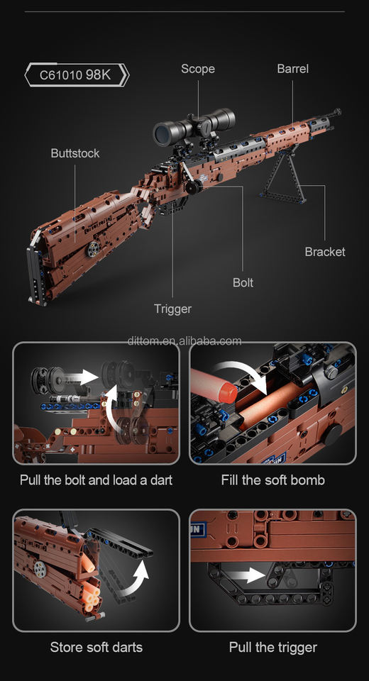 CaDA C61010W Karabiner 98K Mauser, Bloques de Construcción, Modelo de Pistola, Lanza Balas Blandas, Juego de Bloques de Construcción DIY