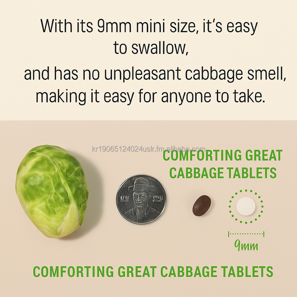 Tabletas de Extracto de Repollo 300mg 200 Unidades Suplemento para la Salud del Cabello para Adultos Natural Vegano OEM Corea Vida Útil de 24 Meses