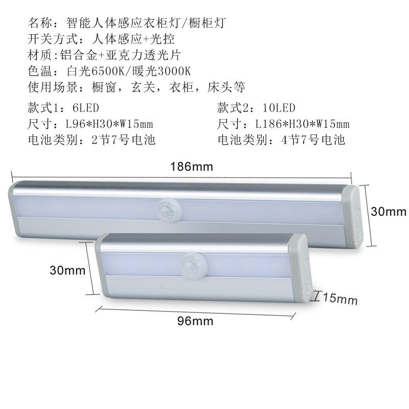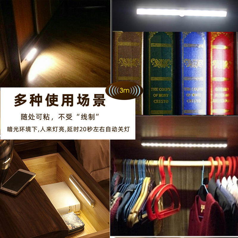 Tira de luz para gabinete, 10 LED, Sensor magnético, luz nocturna, funciona con pilas, fácil instalación, para armario, cajón, uso doméstico