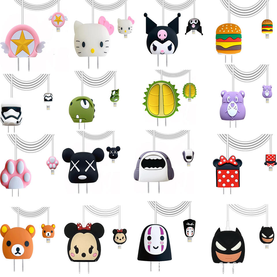 Cable Clips For Apple Devices Silicone Cartoon Cable Protectors Pink And Black Color Blocking Durable Data Cord Organizers
