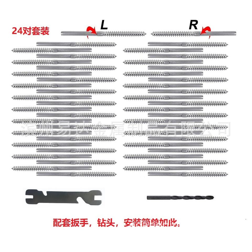 Kit de barandilla protectora para cables, tornillos tensores roscados izquierdo y derecho, 24 pares con llave y broca para instalación DIY
