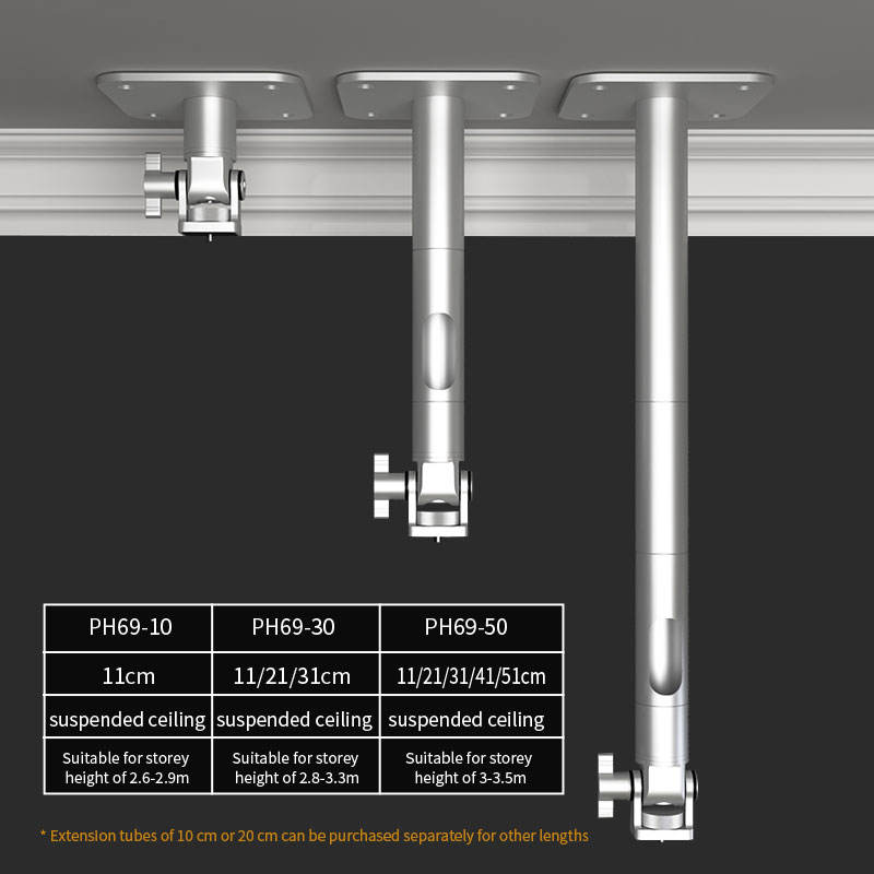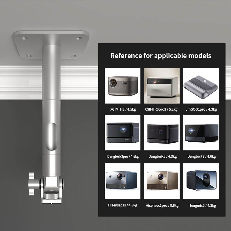 Soporte de Techo para Proyector de Aluminio con Gestión de Cables, 10 kg de Capacidad, Altura Ajustable, Autobloqueo con Amortiguación, Rosca Universal de 1/4''