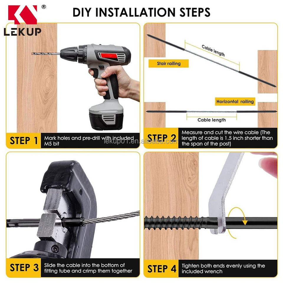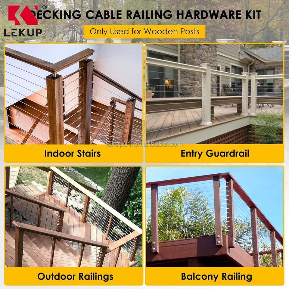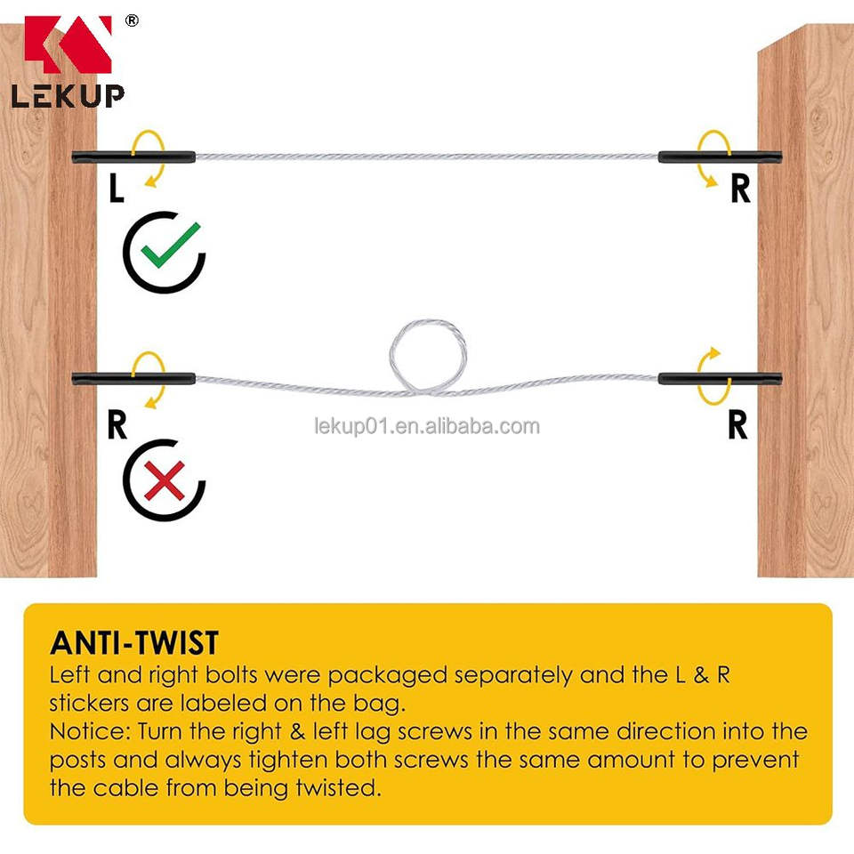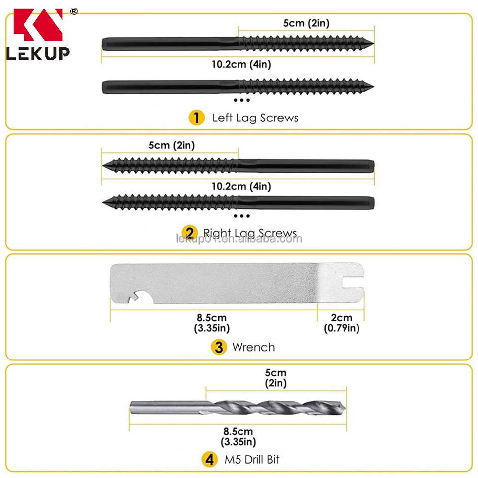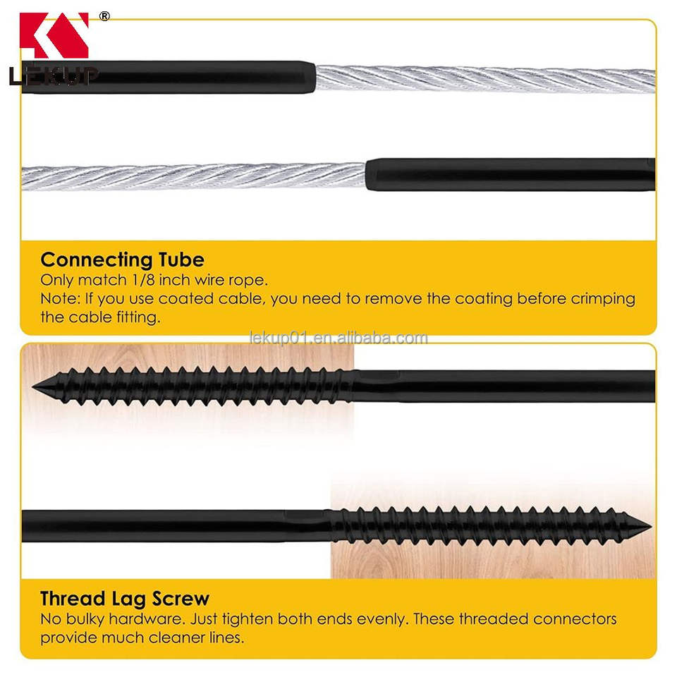 Kit de Barandillas de Cable para Escaleras, Color Negro, 1/8\", Tornillos de Fijación Izquierdo y Derecho, Herrajes de Acero Inoxidable T316 para Barandillas de Cable para Postes de Madera