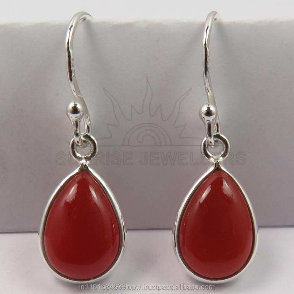 Cabochon Daily Wear Pure 925 Sólido Sterling Sliver Hook Pendiente Natural Red Cornalina Pera Piedra preciosa Pendientes de moda