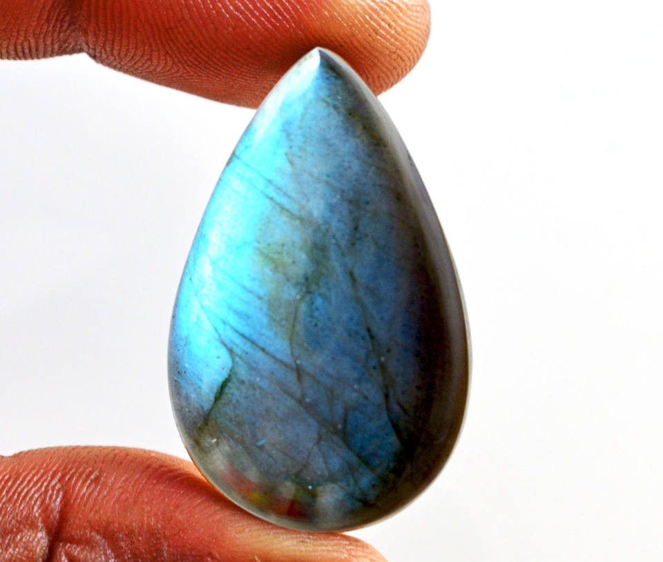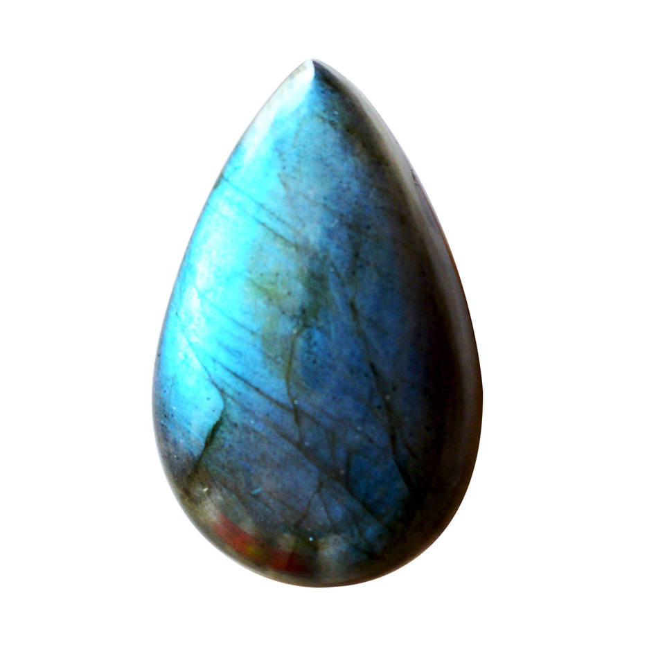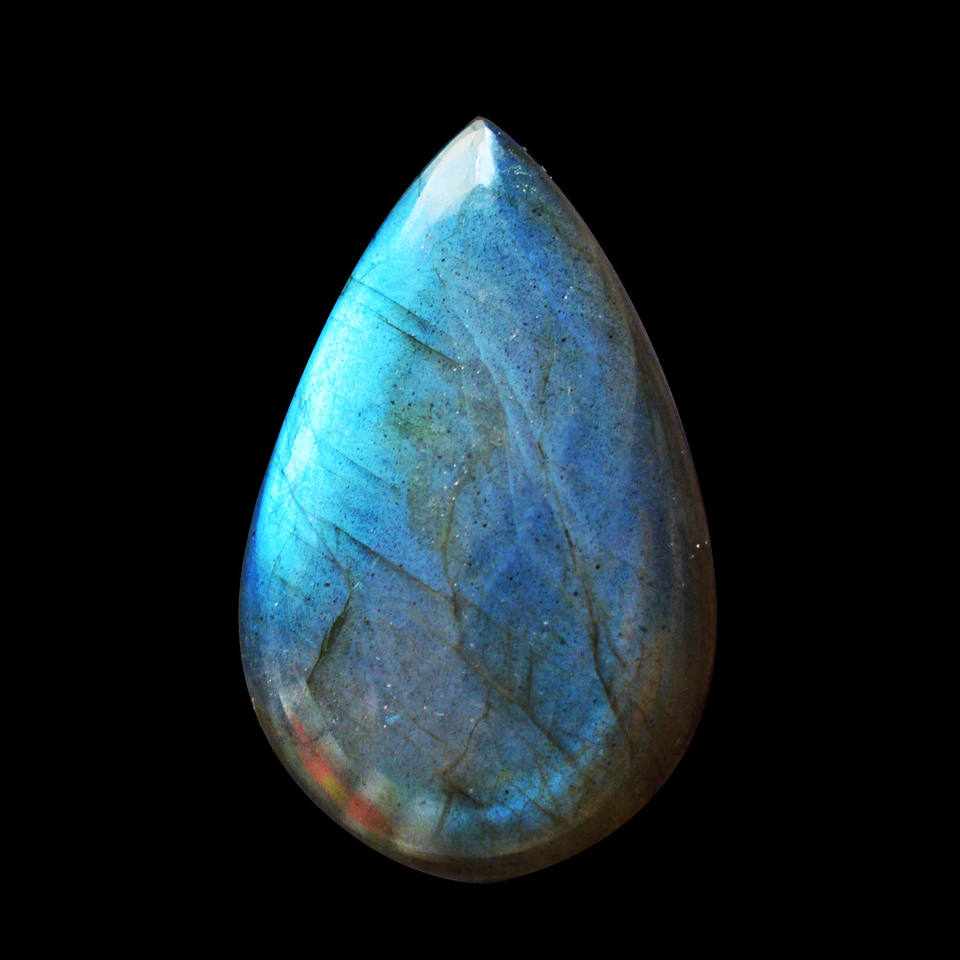 Cabujón de Labradorita Natural con Efectos Ópticos Arcoíris Negro, Brillante y Luminoso, en Forma de Pera, para Colgante, con Cambio de Color