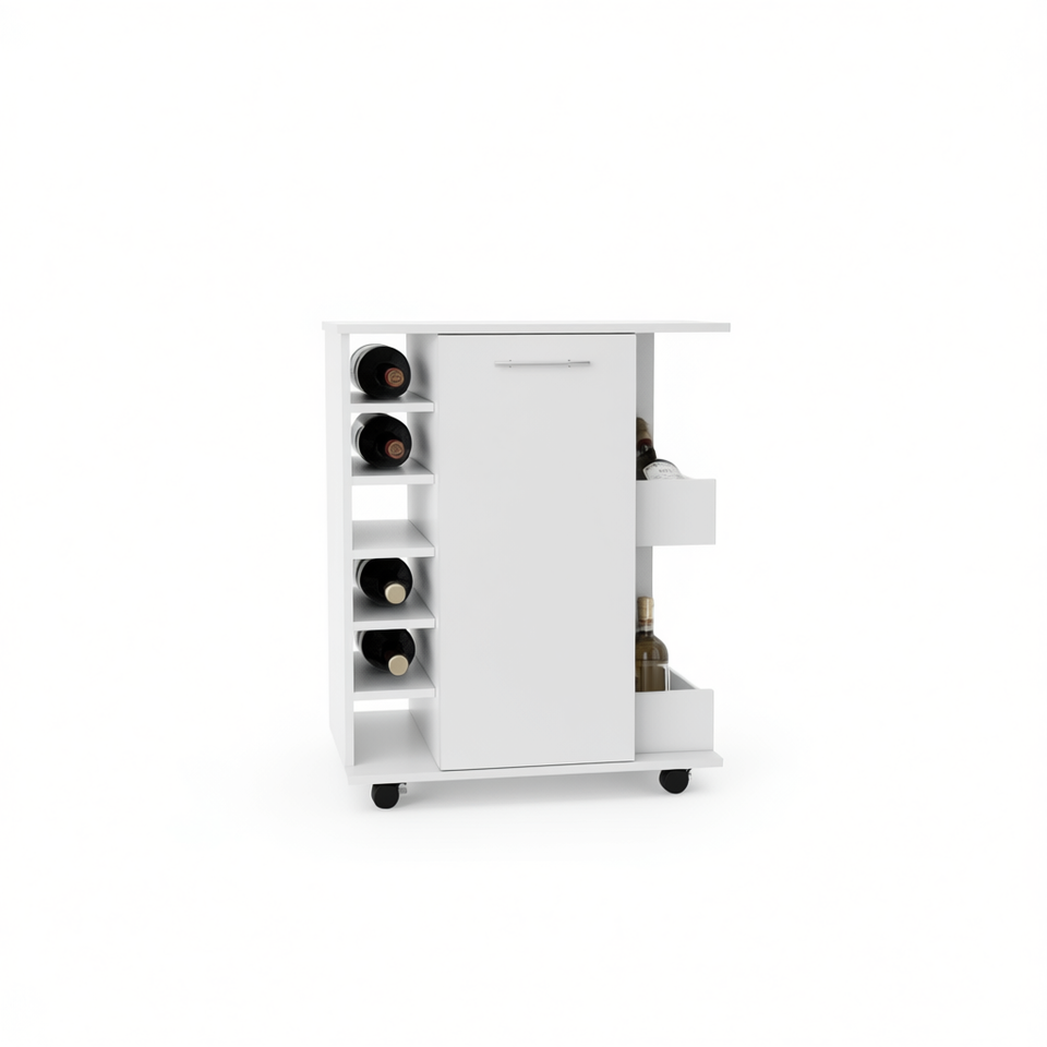 Carrito de bar con estante para vinos Cabot, con capacidad para seis botellas, acabado blanco, diseño moderno, muebles para el hogar