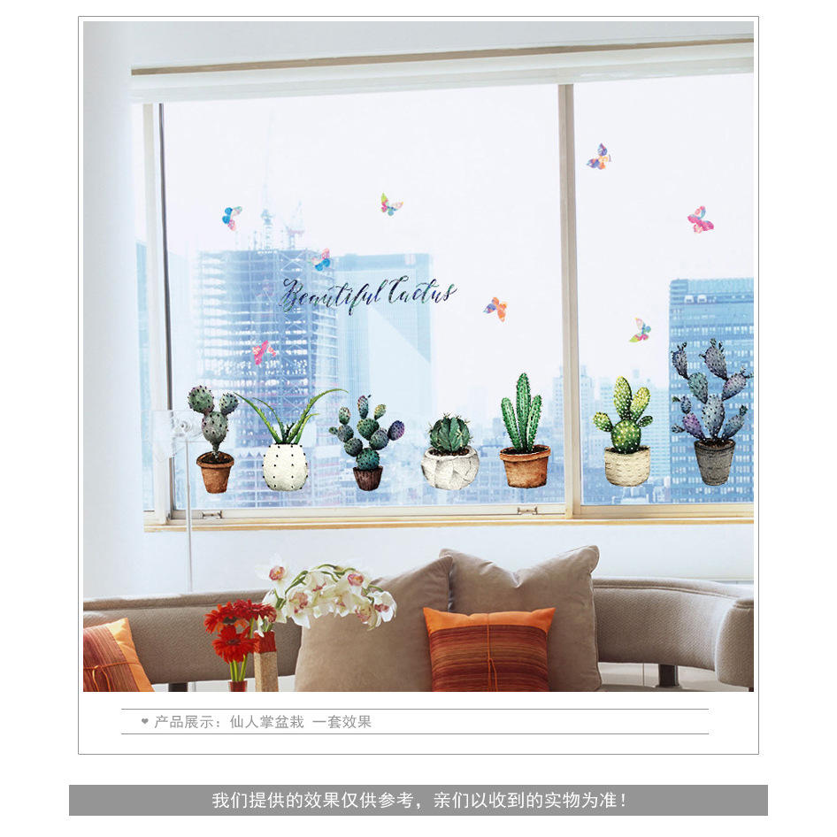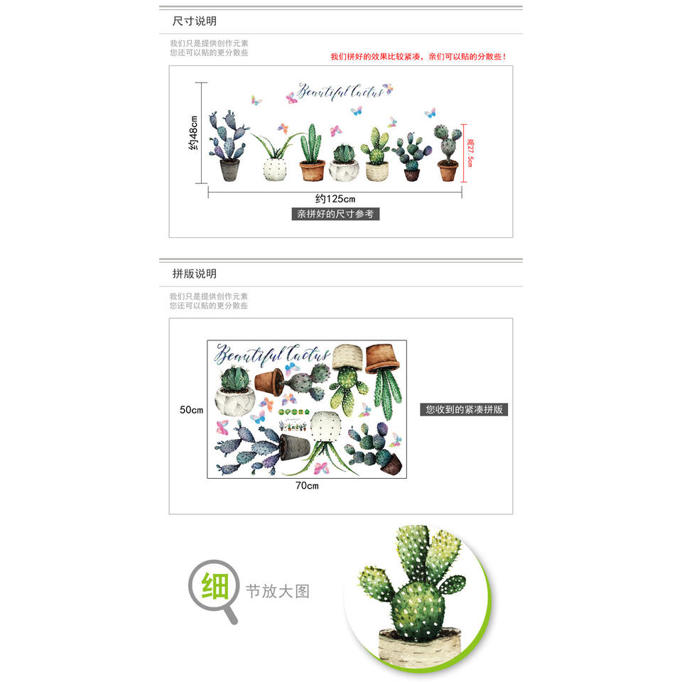 Pegatina de Pared con Diseño de Cactus en Maceta, 50x70 cm, PVC, Decoración Moderna para el Hogar