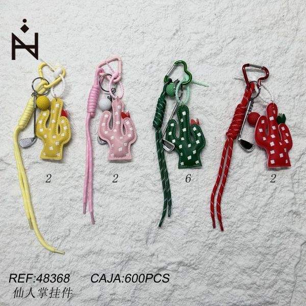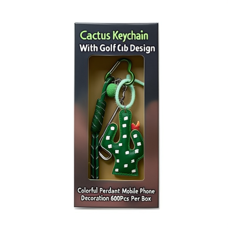 Llavero de Cactus con Diseño de Palo de Golf, Colgante Colorido, Decoración para Teléfono Móvil, 600 Unidades por Caja