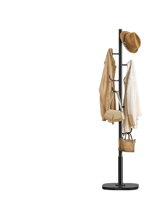 Perchero en forma de cactus, perchero independiente con 8 ganchos resistentes con extremos curvos, alto para sombreros de tela, bolsas con negro
