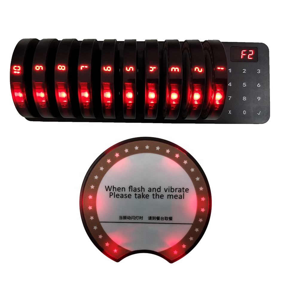 Cafe cola posavasos de largo alcance paginación zumbador impermeable 10 beepers vibrantes camarero inalámbrico sistema de llamada buscapersonas para restaurante