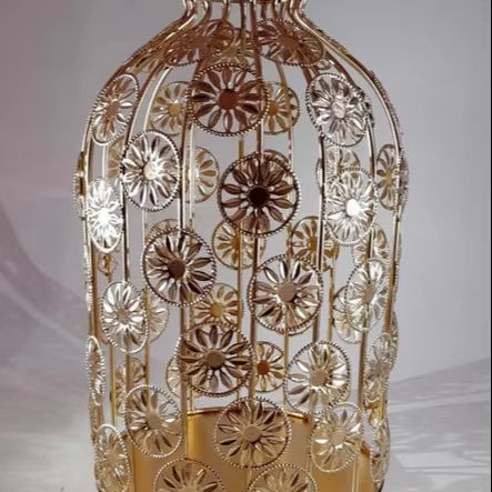 Jarrón con acabado dorado de estilo enjaulado con diseño antiguo, perfecto para la decoración del hogar y fines de regalo, hecho a mano de La India