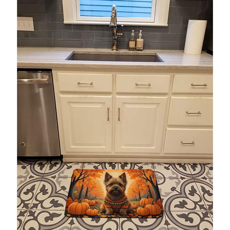 Alfombra de baño de espuma viscoelástica Cairn Terrier Fall, alfombra de cocina antifatiga lavable a máquina, cojín cómodo para uso en baño o cocina