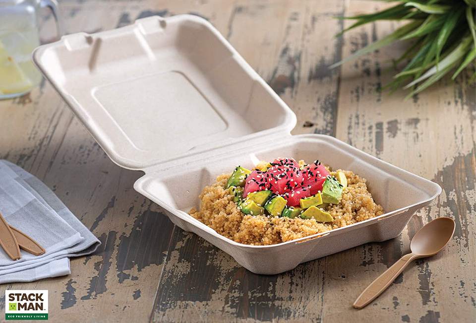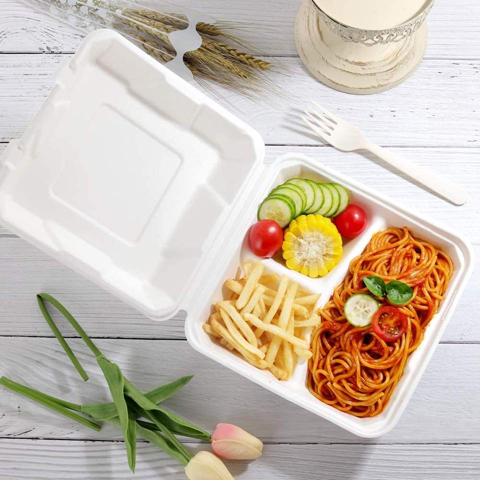 Caja de almuerzo desechable Biodegradable con tapa, para llevar caña de azúcar, 100%
