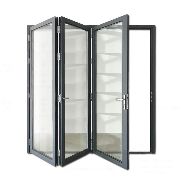 Detalles del embalaje:New Model Modern Front Aluminium Bathroom Door Entry Doors Folding Aluminium Bathroom Doors Transparent;